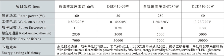 Note: 1. Select according to the product model description, pay attention to marking out the ex-mark;e.g.: Need product of 40W, 220V, pendant type, with junction box,gas explosion-proof, then the model should beDED410-40gH ExdIICT6 Gb;