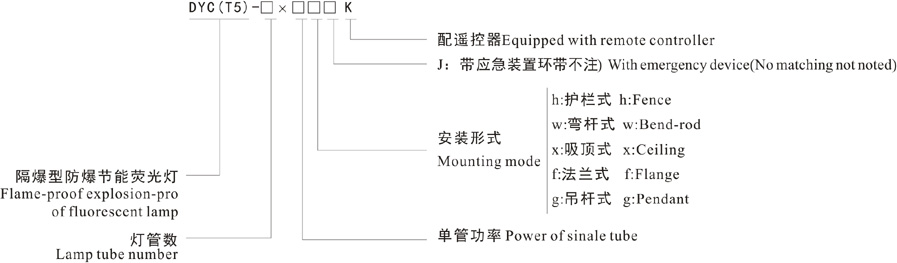 With emergency derice DYC(T5)type flame-proof explosion-proof fluorescent lamp of mounting mode are ceiling and pendant.