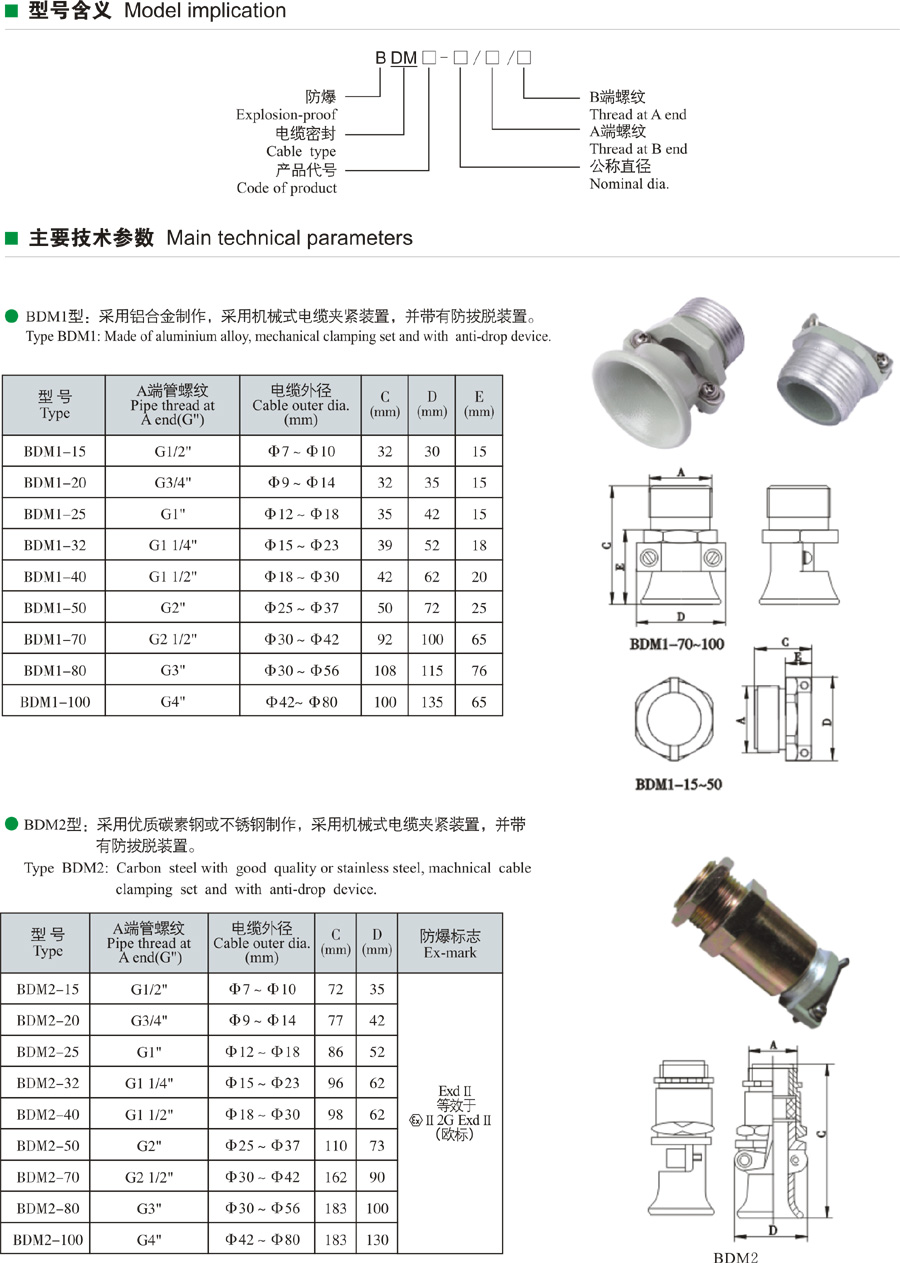 BDM□-系列防爆電纜夾緊密封接頭